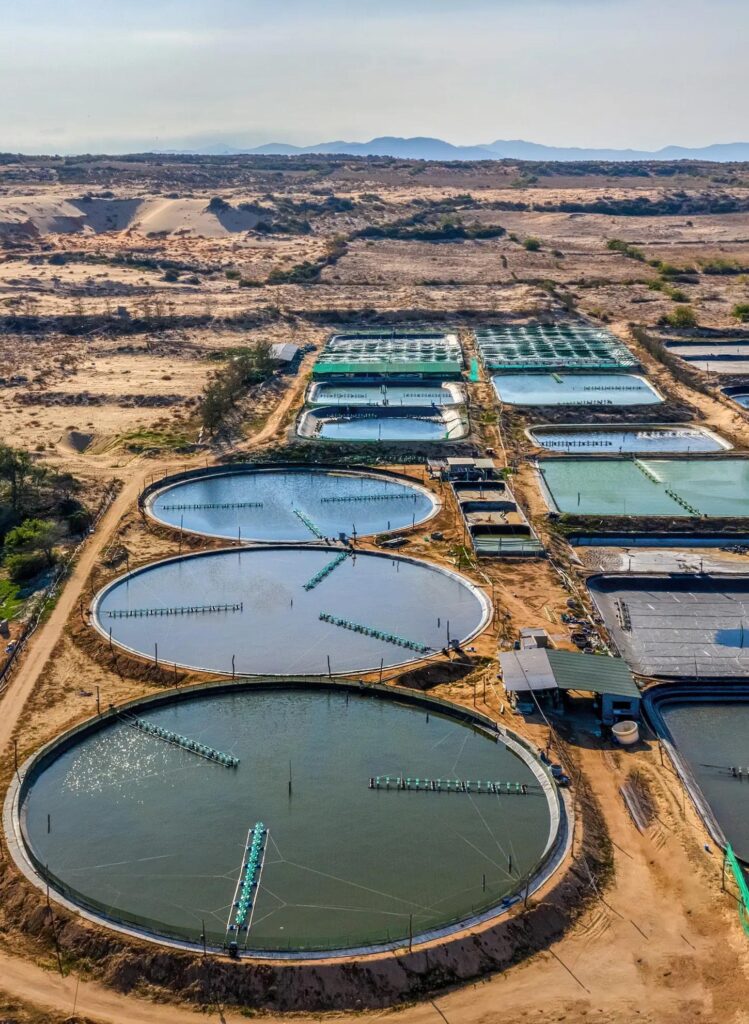 In aquaculture, sustainable production includes feed manufacture and its components. This is both larval and grow out diets. It also includes water treatment before, during and after use (from the farming process as well as from the feed mills and processing plants). Other factors are animal health and animal productivity (survivals, growth rates, etc.).